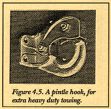 The gross weight must include the trailer itself AND its cargo. For extremely heavy duty applications-over 8500 lb-few ball and coupler connections are strong enough. A lunette eye, Figure 4.5, should be used with the pintle hook shown in Figure 4.6. Whatever your application, it is important to know the eventual gross load and the coupler’s stated rating.