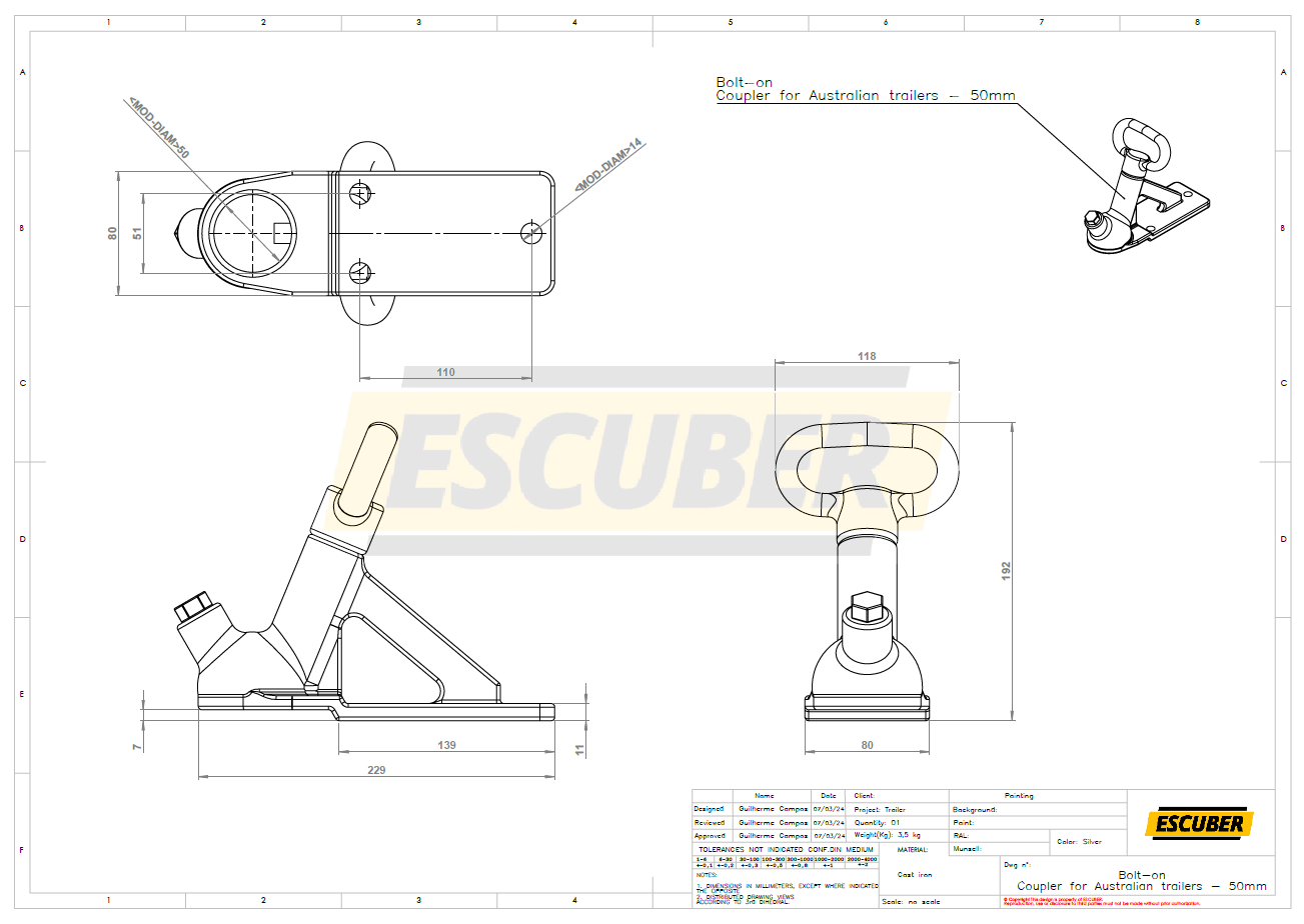 Bolt-on – Coupler for Australian trailers – 50mm