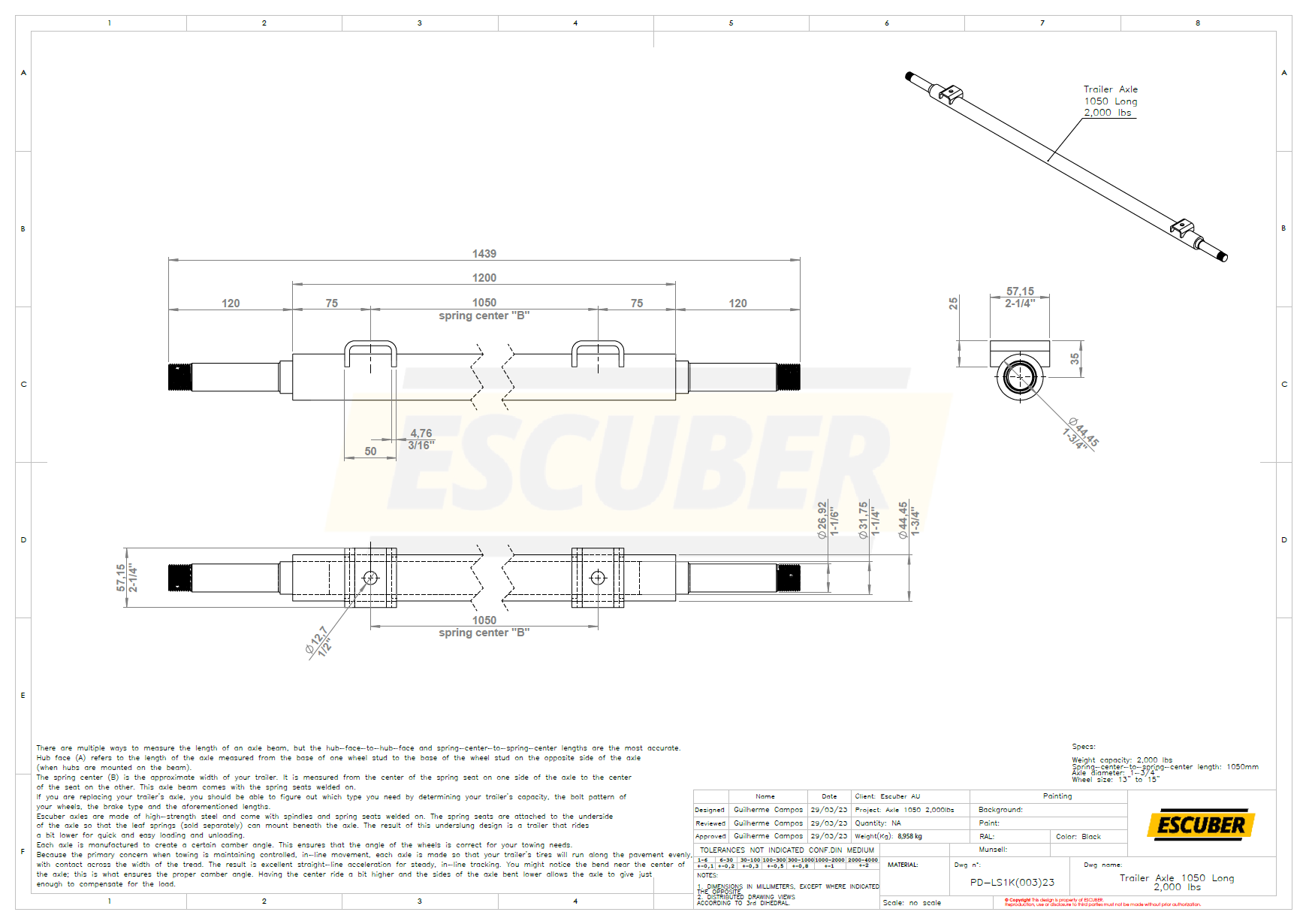 Escuber axles are made of high-strength steel and come with spindles and spring seats welded on. The spring seats are attached to the underside